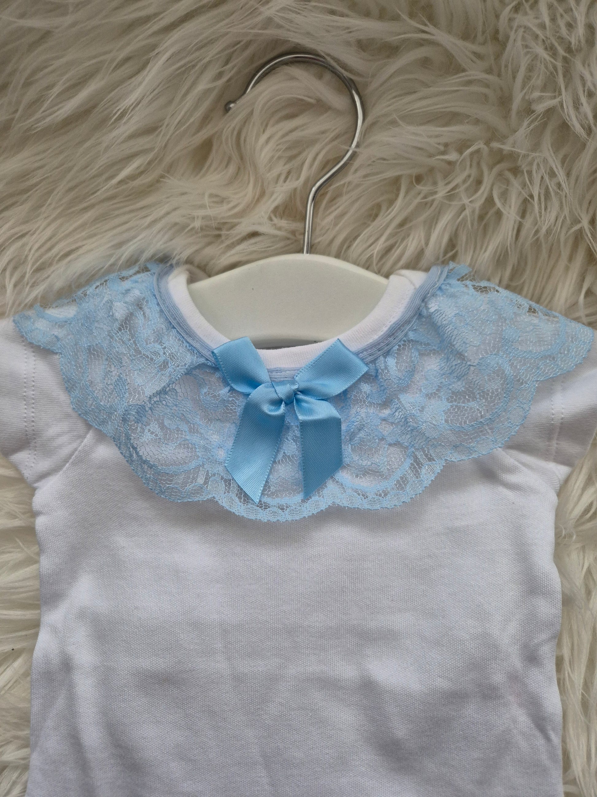 White vest with Blue lace and Bow collar