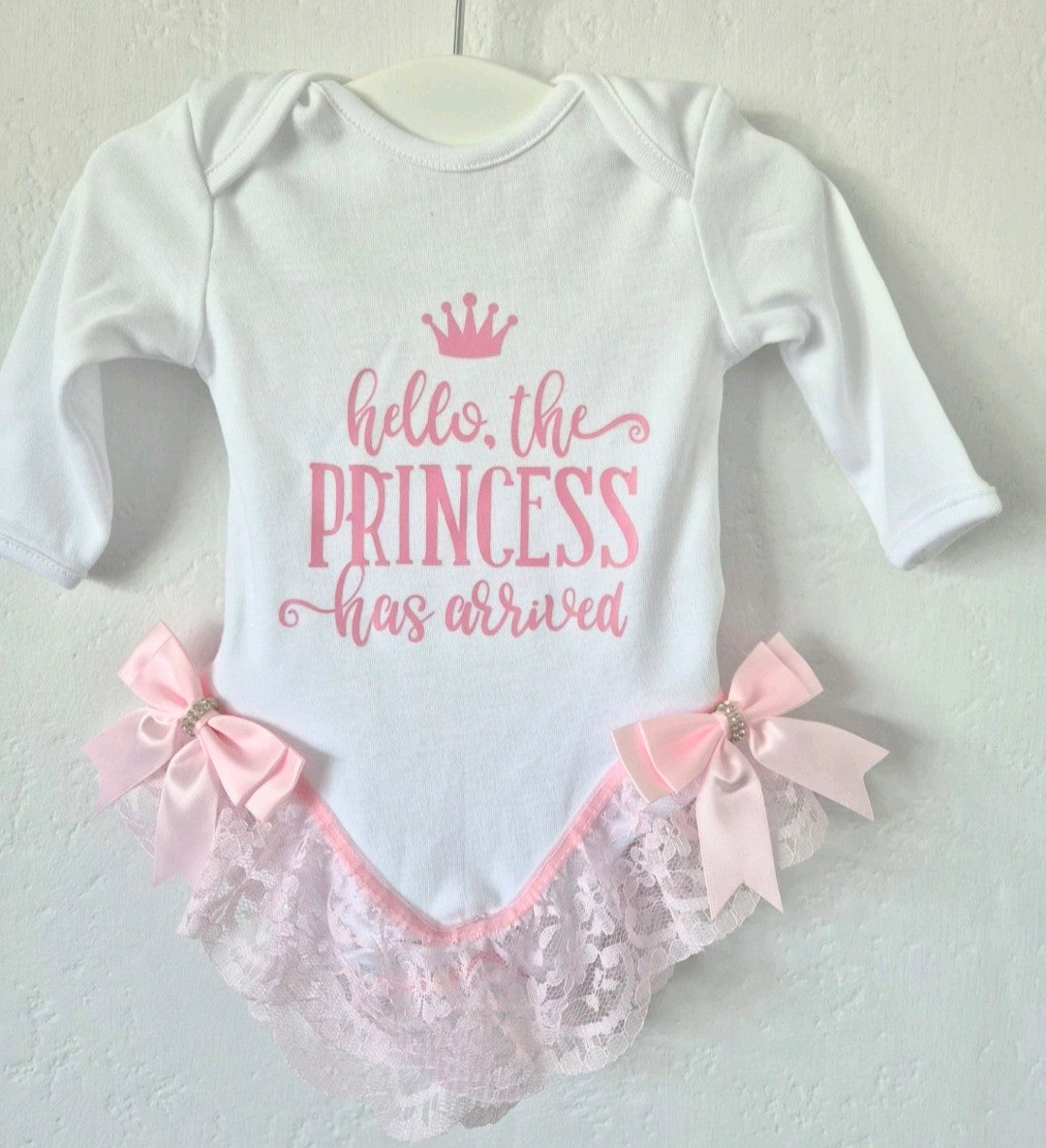 Hello the Princess has arrived vest with Pink lacy bottom and Pink bows