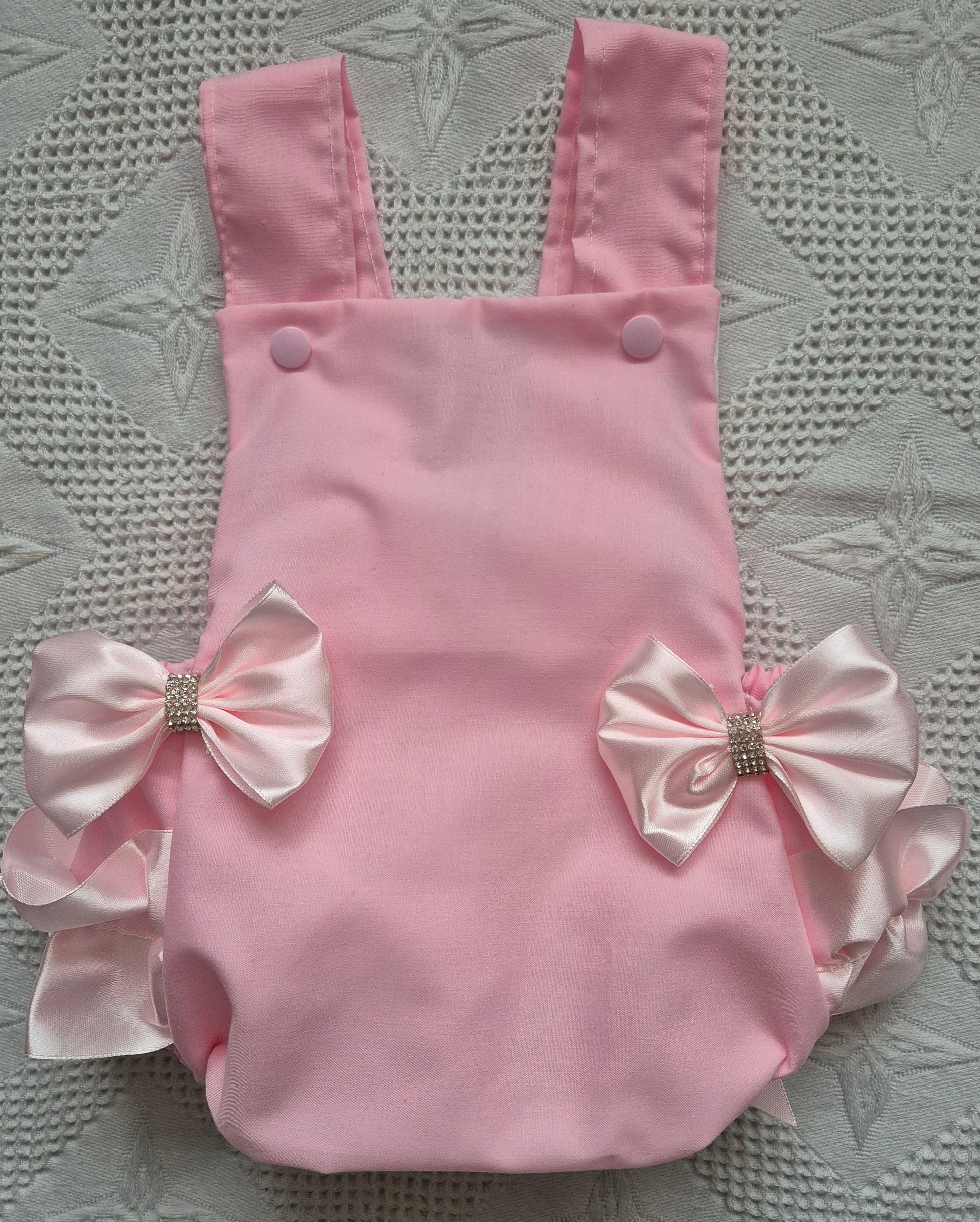 Pink romper suit with Pink frilly back and Pink diamante bling bows