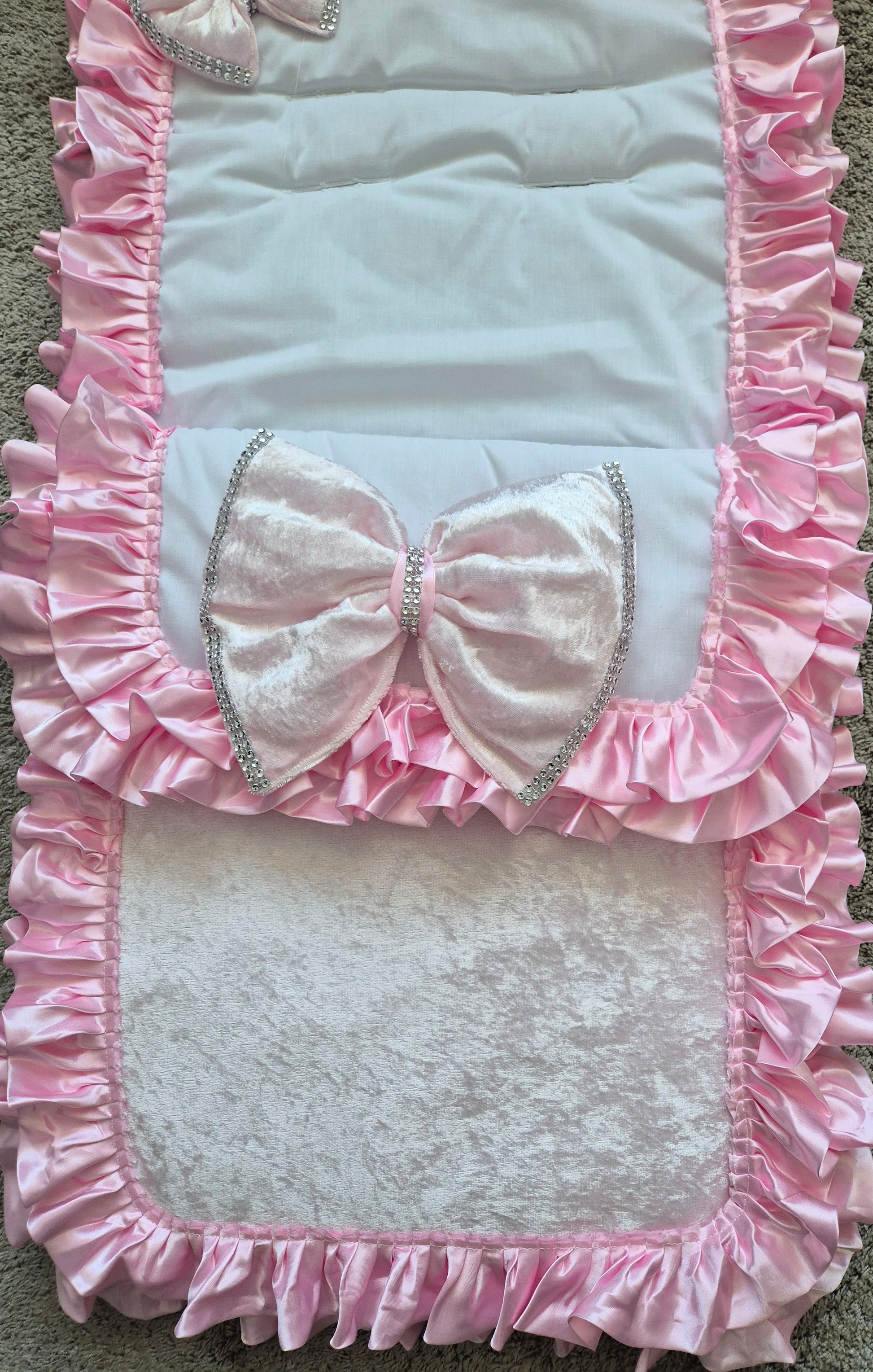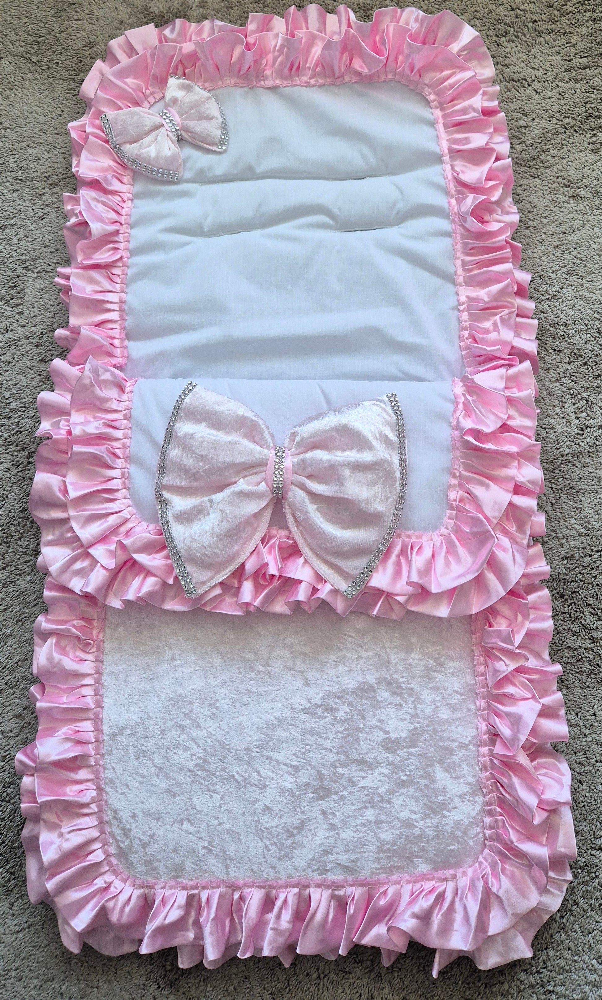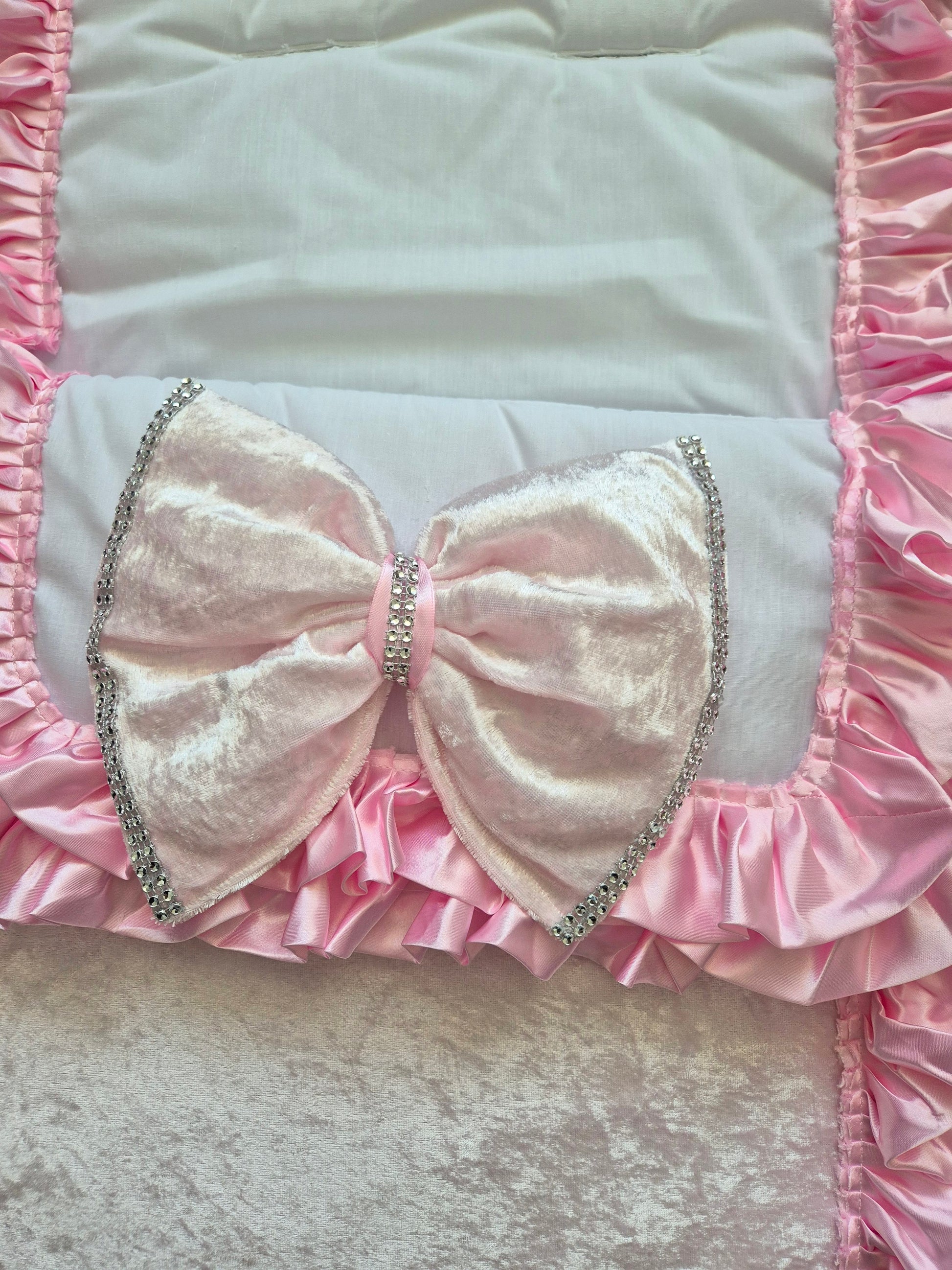 White Cosytoes Pink crushed Velvet front Pink frills and Pink crushed Velvet bling bows