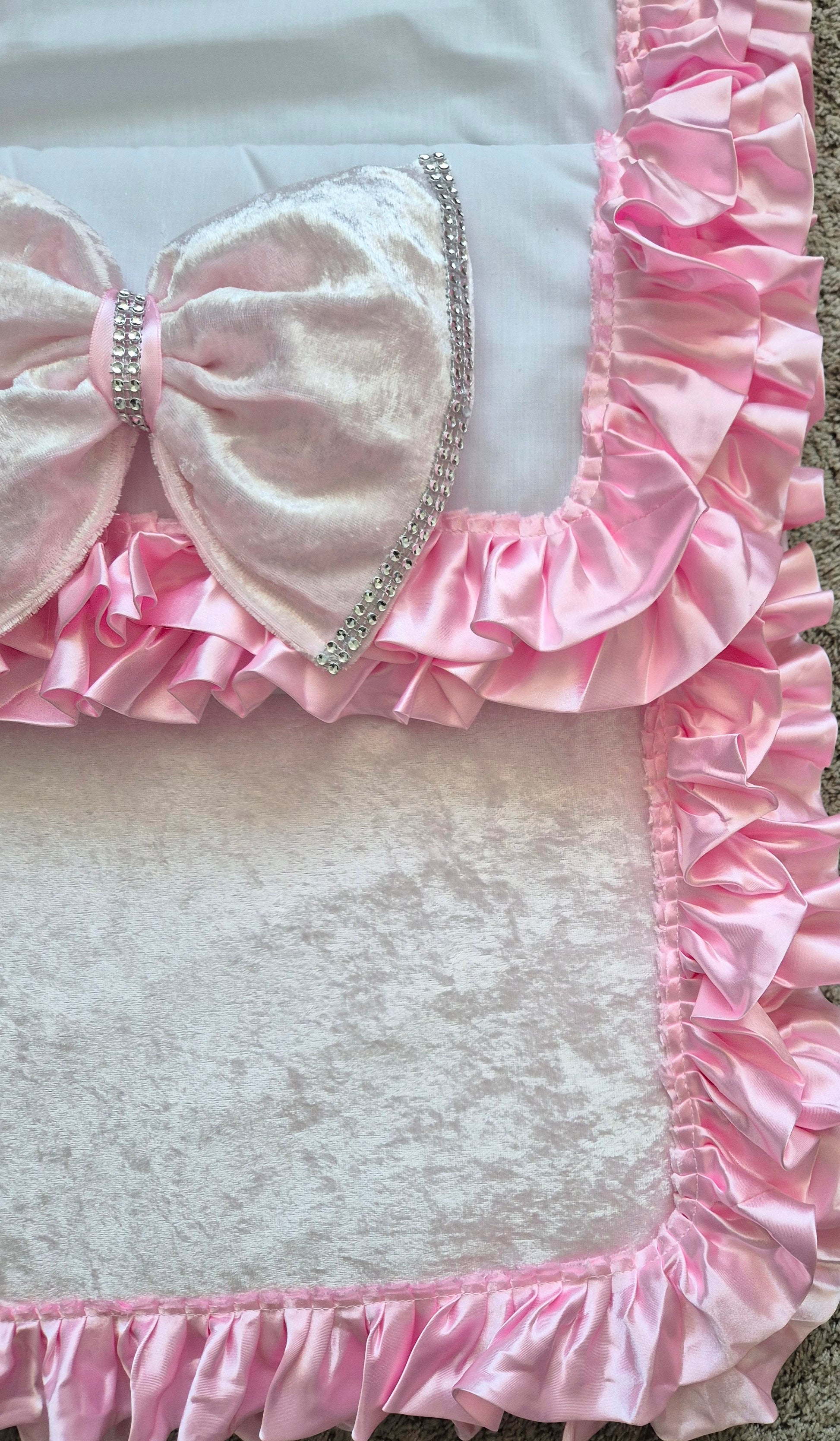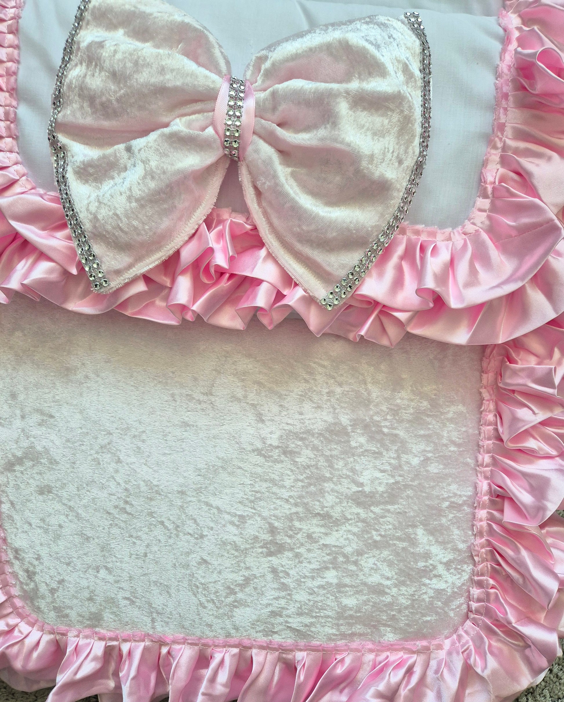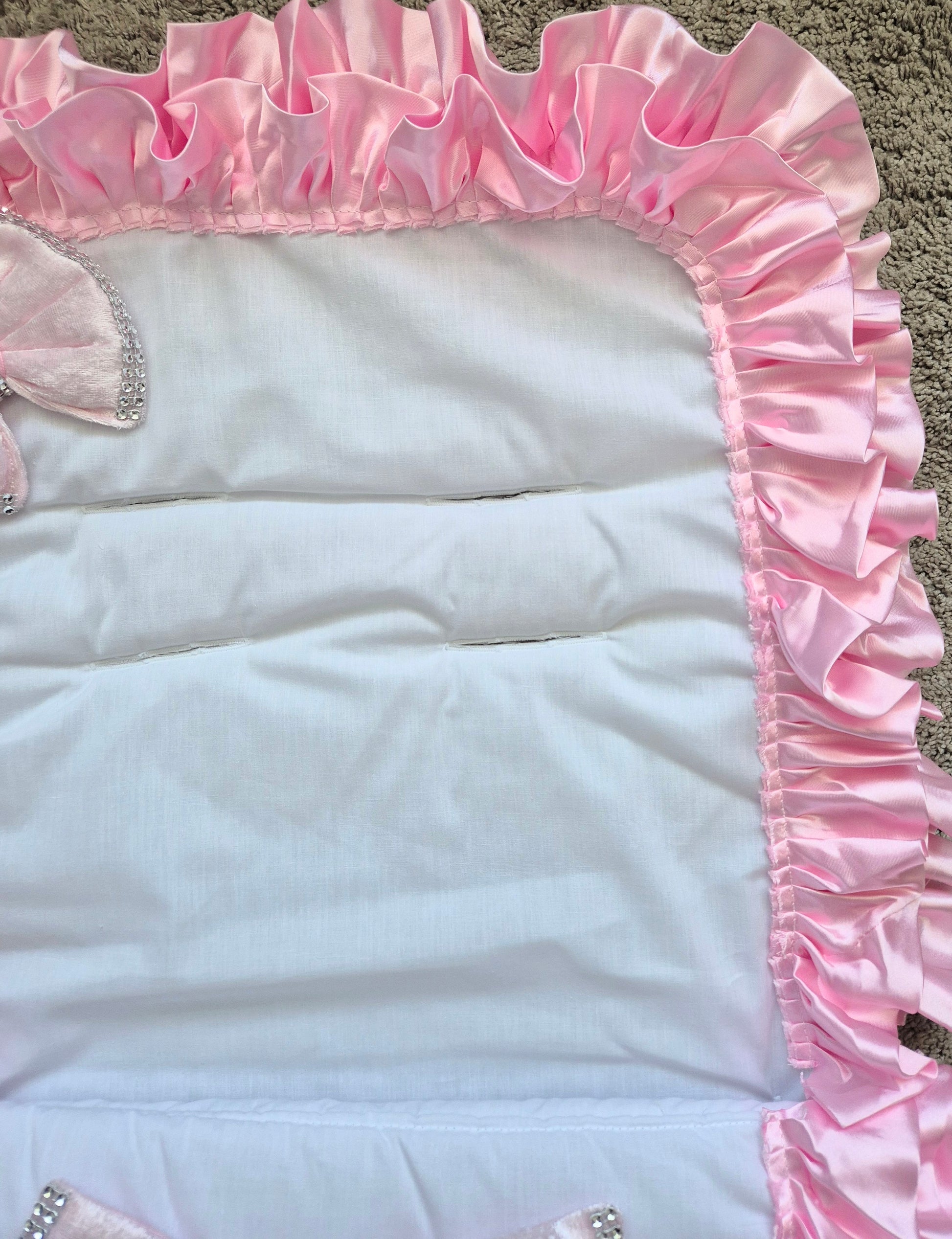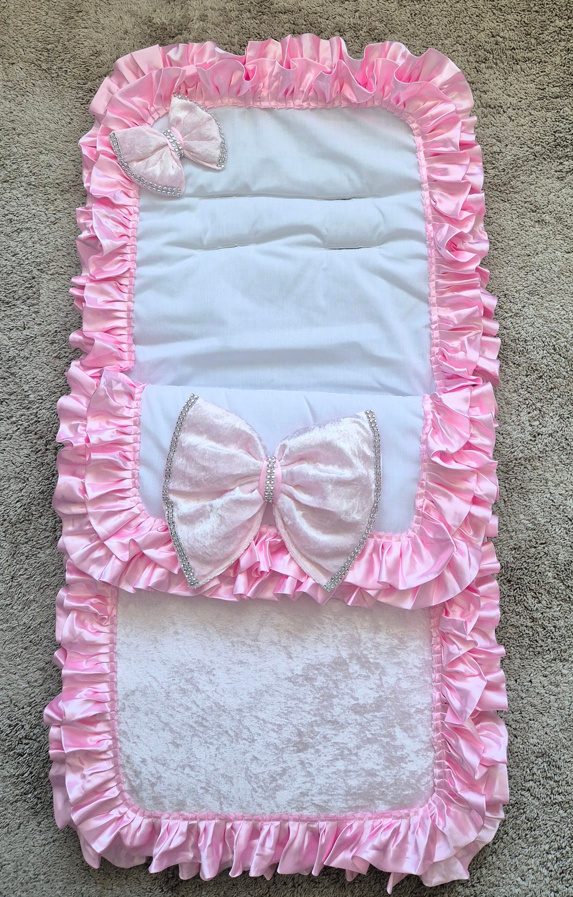 White Cosytoes Pink crushed Velvet front Pink frills and Pink crushed Velvet bling bows